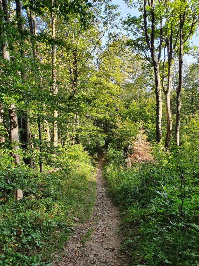 W sobotę postanowiliśmy wysilać się nieco mniej, zwłaszcza, że mieliśmy też plany na noc, dlatego szukaliśmy jakiegoś krótszego szlaku. Średnio nam to wyszło, bo skończyło się trzema godzinami szybkiego marszu na szczyt Chryszczata. O ile ja zakochałam się w Połoninie, o tyle Kolega Małżonek zachwycił się ścieżką przez las, w okolicach Chryszczatej. Faktycznie szlak był przepiękny, mało uczęszczany, lekko dziki. Całą frajdę lekko psuły tylko czarne wizje związane ze znakiem, który napotkaliśmy po drodze…