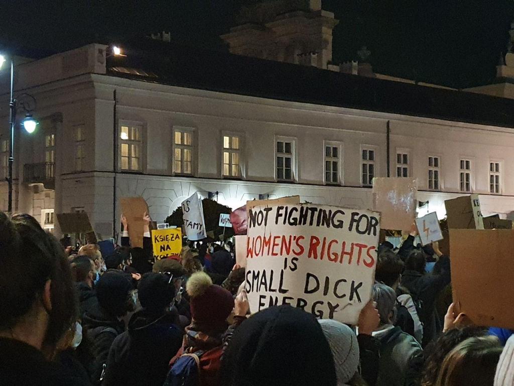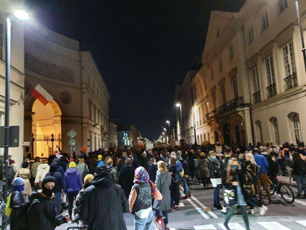 Z tym plakatem pod pachą, mężem i grupą znajomych udałam się dziś na protest. Szliśmy w gigantycznym tłumie ludzi, niedaleko platformy grającej muzykę. Od czasu do czasu tłum skandował dwa znane wszystkim hasła z użyciem wyrazów powszechnie uznanych za nieparlamentarne. Inne hasła też były, podobnie jak kilkukrotne „Dziękujemy” pod adresem mijanych ratowników medycznych. Wandalizm, agresja? Nie.