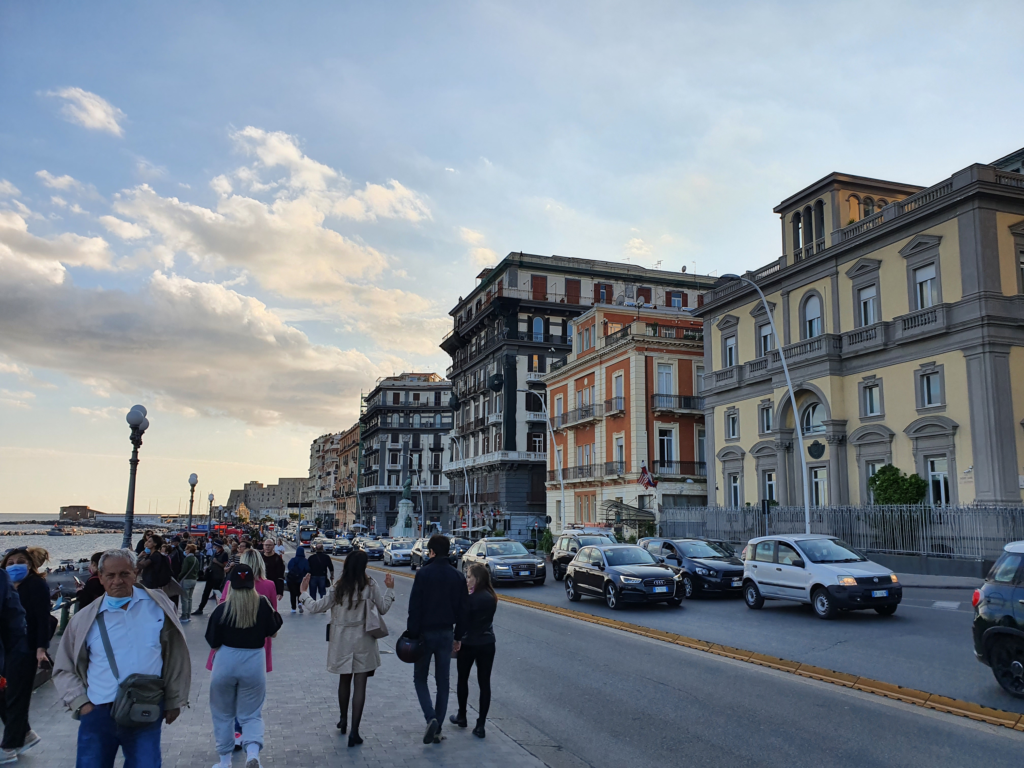 A skoro już o spalinach mowa, to ruch na większych ulicach Neapolu bardzo przypominał nam ulice Maroka: przepisy drogowe sprawiają tu wrażenie co najwyżej delikatnej sugestii, podobnie jak przejścia dla pieszych (nie oczekujcie, że ktoś przed nimi choćby zwolni, nawet jak już jesteście na środku), czy znaki. Każdy jedzie gdzie chce i jak chce, motory i skutery wciskają się wszędzie, a temu wszystkiemu towarzyszy hałas klaksonów i wspomniany już opar spalin.