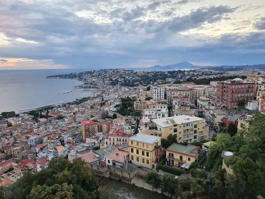 Mamy też Castel Sant’Elmo w bardzo ładnej dzielnicy Vomero (której nie zrobiłam zdjęć, bo zrobiło się ciemno), z którego rozciąga się absolutnie oszałamiający widok na całe miasto i na Zatokę oraz na Wezuwiusza. W ogóle fakt, że gdziekolwiek się nie jest, prawie zawsze gdzieś na horyzoncie majaczy ON jest super: