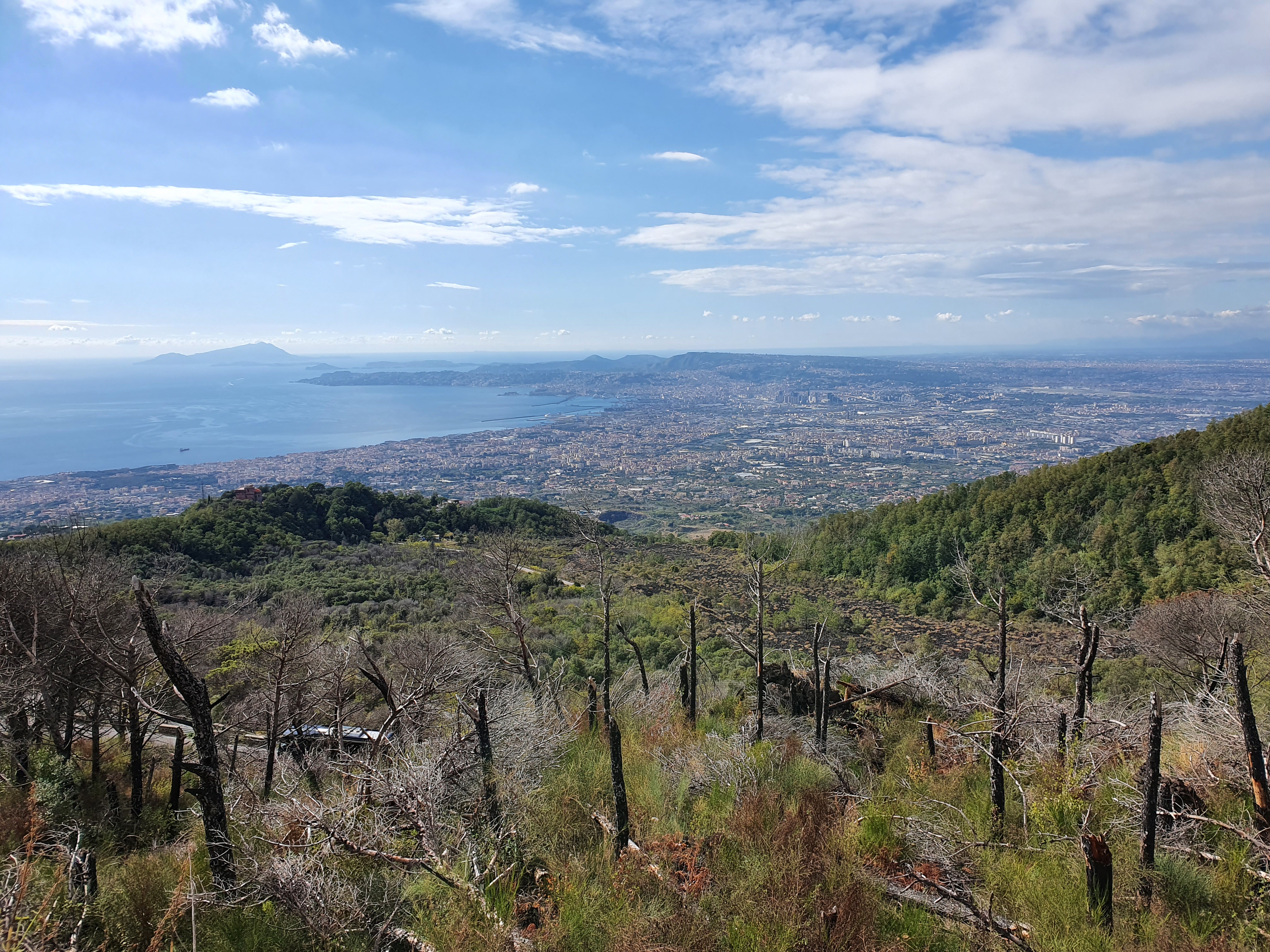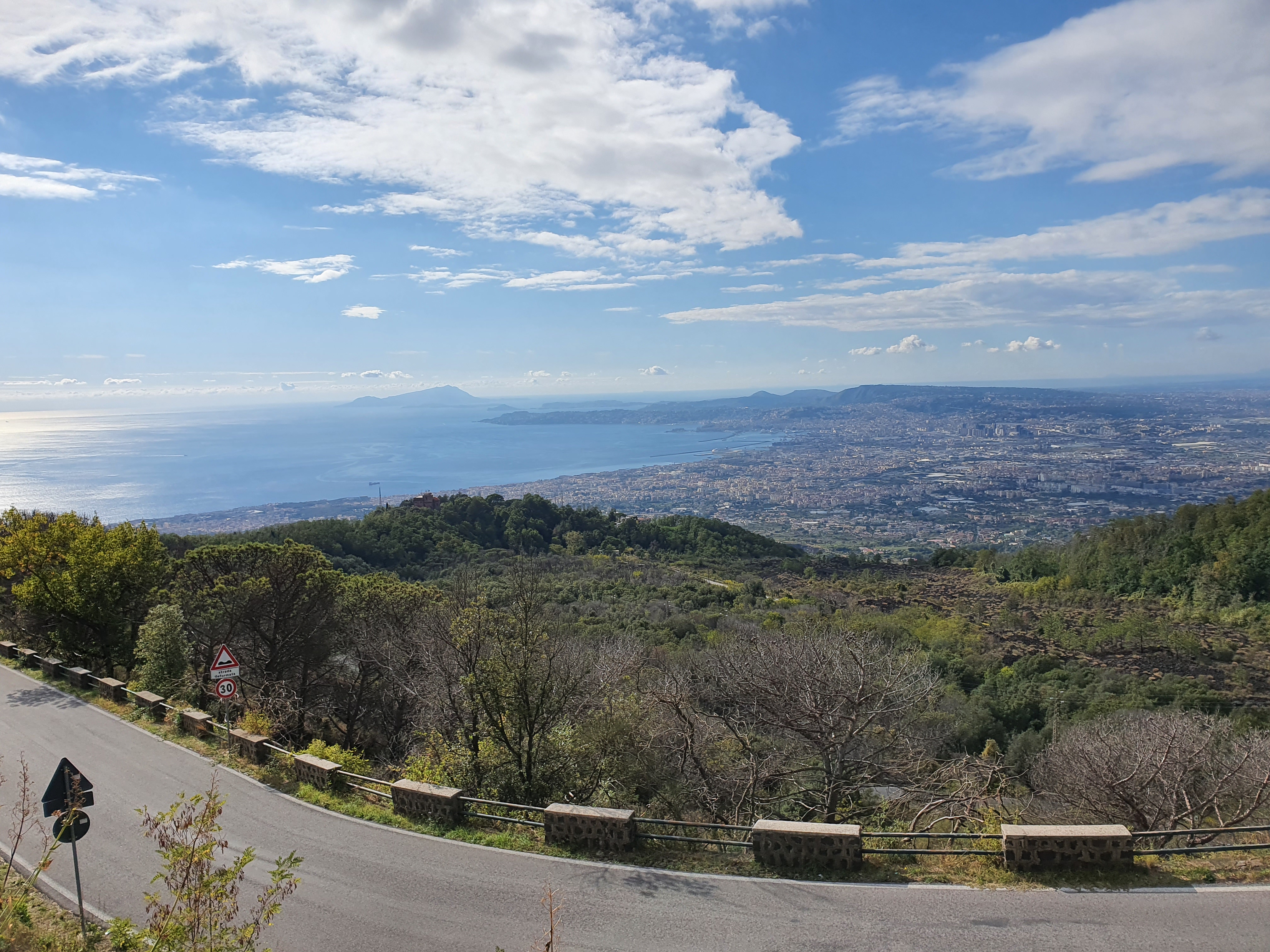 Na koniec tego spaceru spotkał nas też chyba jedyny prawdziwy Łut Szczęścia podczas całego wyjazdu. Właśnie zeszliśmy z góry, ale przed nami była jeszcze jakaś godzina marszu przez ludzkie osiedla. Trochę na to nie mieliśmy ochoty, bo nie dość, że byliśmy zmęczeni po całym tym szalonym dniu, to jeszcze to by była droga bez żadnych fajnych widoków. I wtedy, właśnie gdy mijaliśmy pierwsze od szczytu miejsce w którym mógłby się zatrzymać autokar: zza zakrętu wynurzył się dokładnie ten sam, który 2,5h wcześniej zawiózł nas na górę! Do tego kierowca nas poznał i zaproponował podwózkę do stacji. A tam okazało się, że CIRCUMVESUVIANA JUŻ NIE STRAJKUJE. W związku z czym w 20min byliśmy z powrotem w centrum Neapolu.