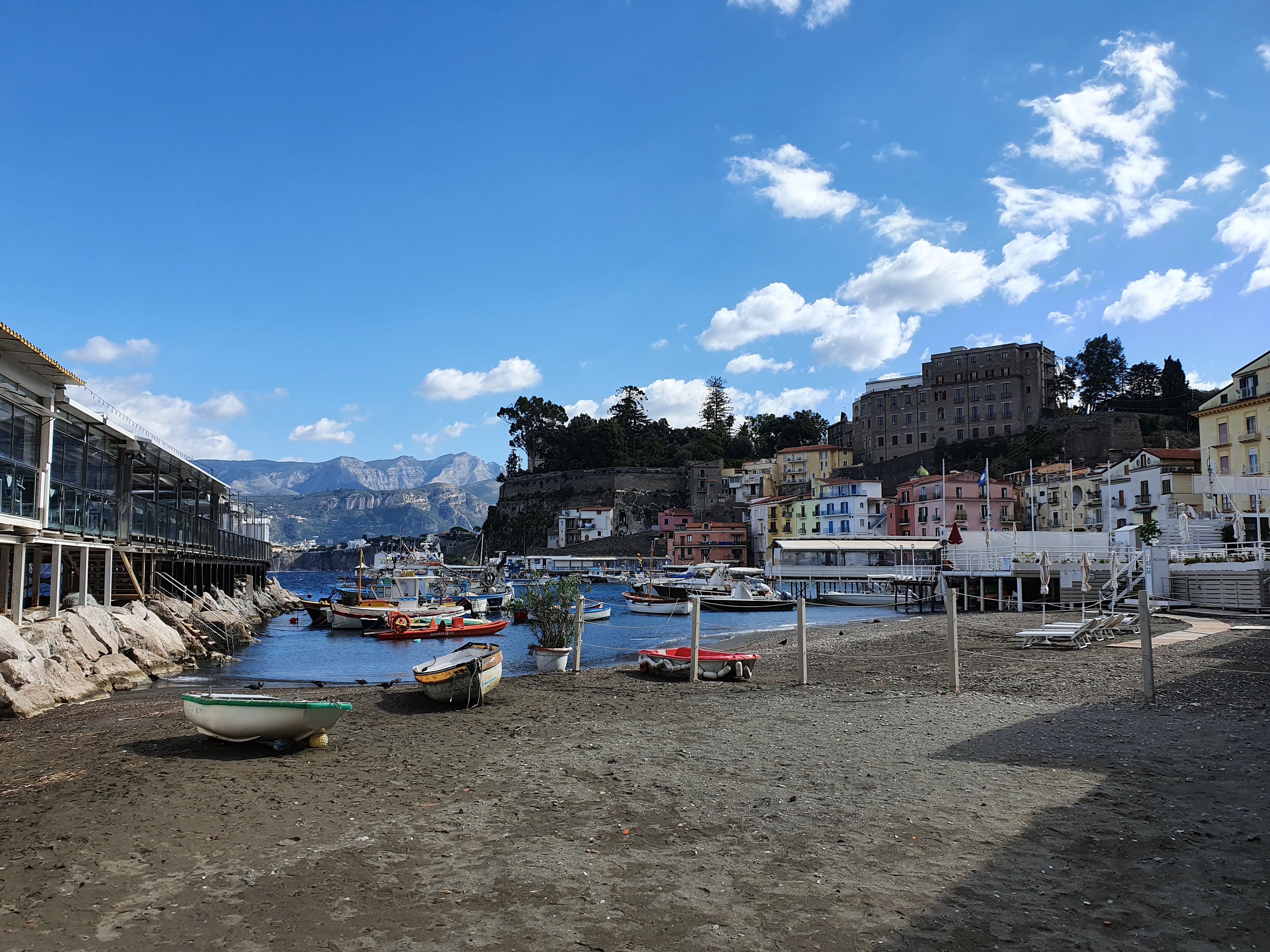 „Na dole” z kolei leży Marina Piccola czyli port, z którego ruszają rejsy wycieczkowe, coś w rodzaju plaży – chociaż tak naprawdę nie za bardzo jest to plaża, a bardziej mola, na których są leżaki i parasole, które pełnią rolę plaży; oraz – co odkryliśmy ostatniego dnia – Marina Grande, czyli najstarsza część miasta, gdzie cumują łodzie rybackie i gdzie można zobaczyć rybaków przywożących świeże ryby do okolicznych knajp, czy cerujących sieci.