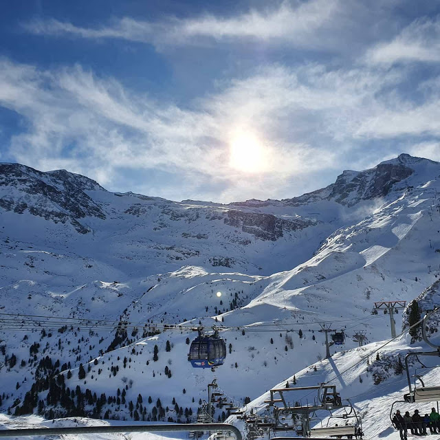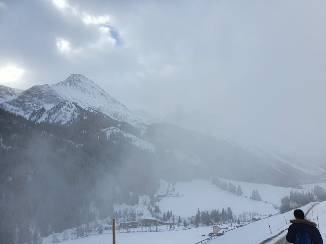Dziś dla odmiany od Maroka: Alpy. Góry jak to góry bywają humorzaste. Wczoraj było piękne słońce, dziś chmury, mgła, wicher i pozamykane wyciągi narciarskie.