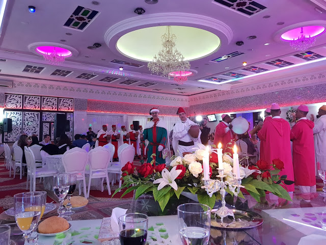 Ozdabianie henną dłoni (i ewentualnie stóp) panny młodej to tradycja tak samo popularna w Maroku jak i w Indiach, Pakistanie czy Nepalu. Zazwyczaj przyjmuje albo formę henna night, kiedy w malowaniu biorą udział także inne zaproszone na ślub kobiety, albo jest fragmentem wesela. W tym przypadku panna młoda (czyli ja) siedzi na podium na zielonej kanapie i na oczach wszystkich gości ma robione zdobienia. Po ich nałożeniu bohaterka dnia siedzi sztywno (bo szpilki nie pozwalają jej drgnąć), czekając aż henna wyschnie i eksponując dłonie, a goście podchodzą robić sobie z nią (i panem młodym) zdjęcia.